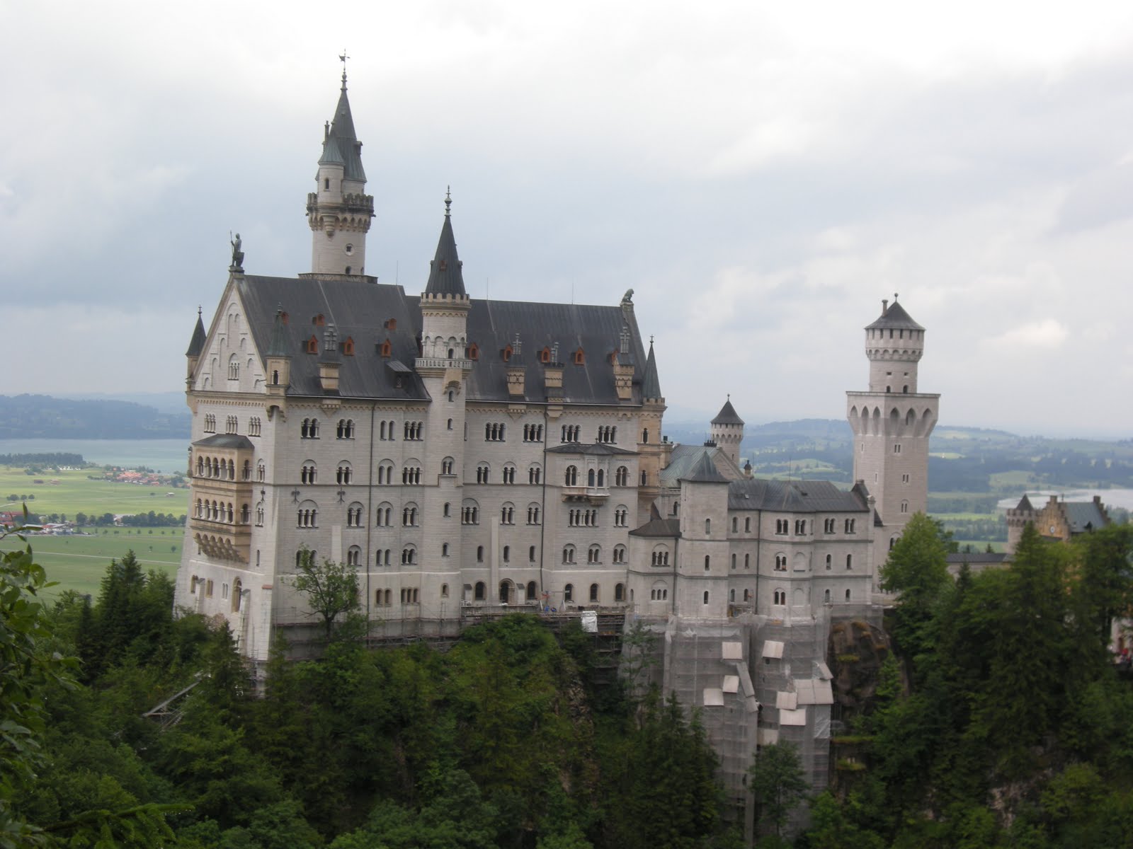 So today we went to the castle about 2 hours south from Munich. The castle was so amazing. This castle is what Cinderellas' castle is based off of. When we got to the castle we parked all the way at the bottom of the hill and were not told that it was a thirty minute climb to the top of the mountain. Also right when we got there it began to pour down rain. It was like trying to climb up a slip and slide. So ashley, jenny and I began to climb up the mountain but Ashley was wearing flip flops so it was quite difficult for her go up because she was always slipping and falling out of her shoes. During a walk up the mountain we were lucky to find a nice hotel/restaurant too. Ashley got a potato soup and i got the brat with fries. After lunch we continued our journey up the mountain to meet up with the group for the walking tour of the castle. The view from some of the rooms were amazing. My favorite room was the King;s bedroom because the view from his window was wild. After the tour we went to this famous bridge were you can take amazing pictures. I was able to take some really cool on my phone and ashley got some good ones on the big camera. After pictures we decided to head back to the bus but take the bike trail instead. It ended up working out in our favor because the scenery was so pretty. There was even a waterfall running through the water of the path and hopped on the bus. We got back to the hotel and ashleys german friend Stephi's bf goes to university in Munich and was able to meet up with us and show us around. We met him at the city center by the giant cuckoo clock and began our journey. Our first stop was a very famous market in Munich were many events of Oktoberfest are held. We decided to sit down and enjoy and beer while we got to know each other. We saw his university and it was very different but I liked it. One cool place he showed us was the English Gardens because it was a giant open park with a river/stream running through it and at the top there is like a dip in the water making a constant wave. When we got there there was like 10 surfers taking turns and hitting the waves. I was able to take a pretty awesome video but then Stephi's bf went back to his dorm to study and Ashley and I went to another famous bar/house for dinner. We watched the game and have amazing apple strudel but we were so tired from all the walking that we just went back to the hotel and went straight to bed because we had a long trip to Prague the next day.